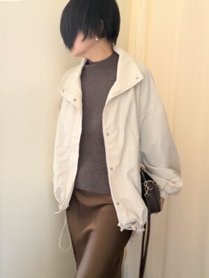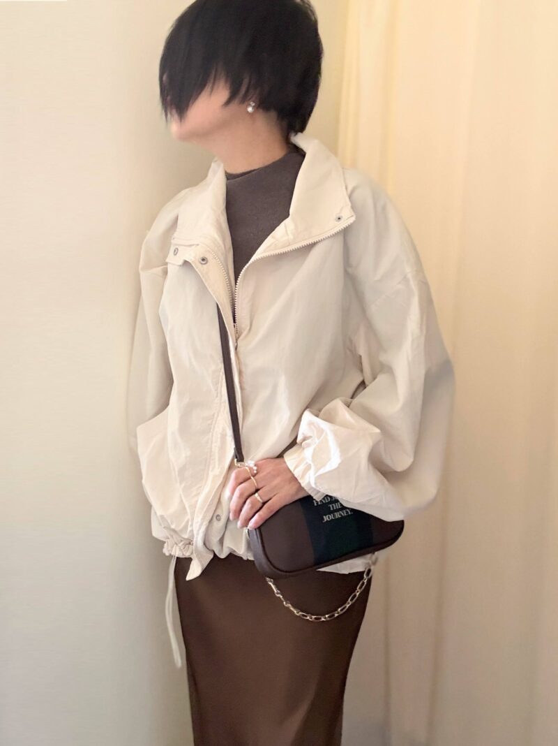 羽織ものが重要。軽くてすっぽり身体を覆う春のブルゾンを。
