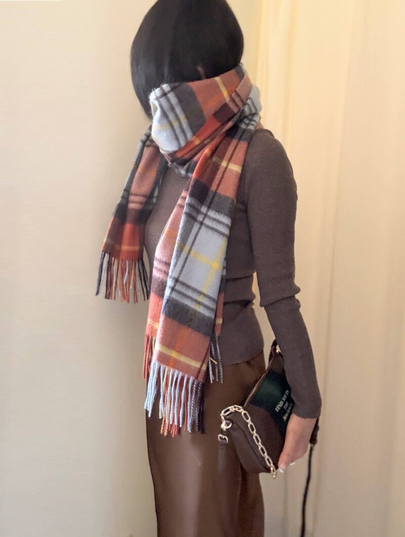 これに軽くて柔らかカシミアストールで首回りを固めた。