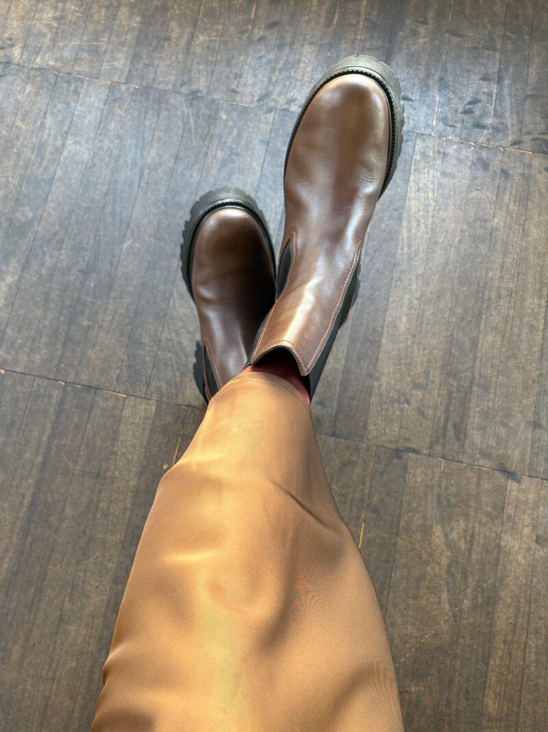 足元。スカートがサテンスカートだったのでちょっと脚が寒いかな?と思って厚底サイドゴアブーツで。