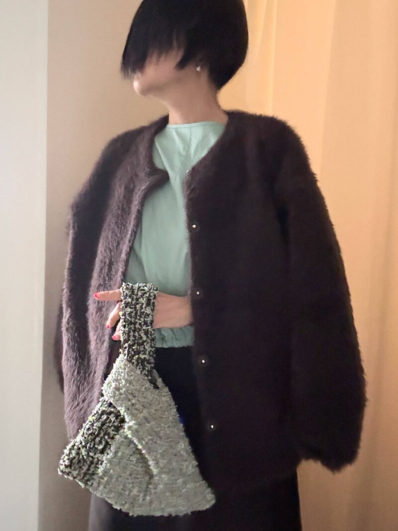 今日、このコーデにした理由はこの手編みのニットbag。↓