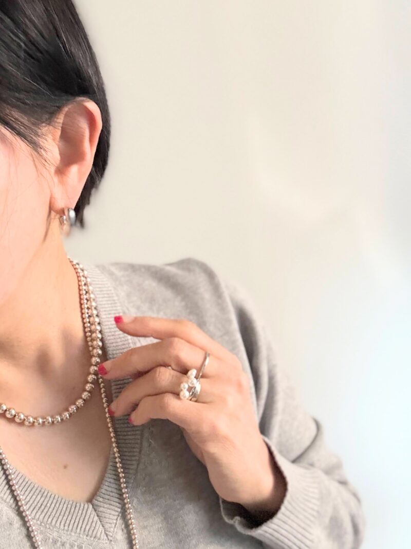アクセサリーもシルバーで。