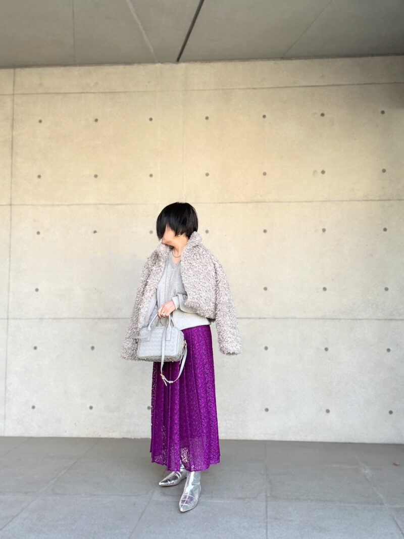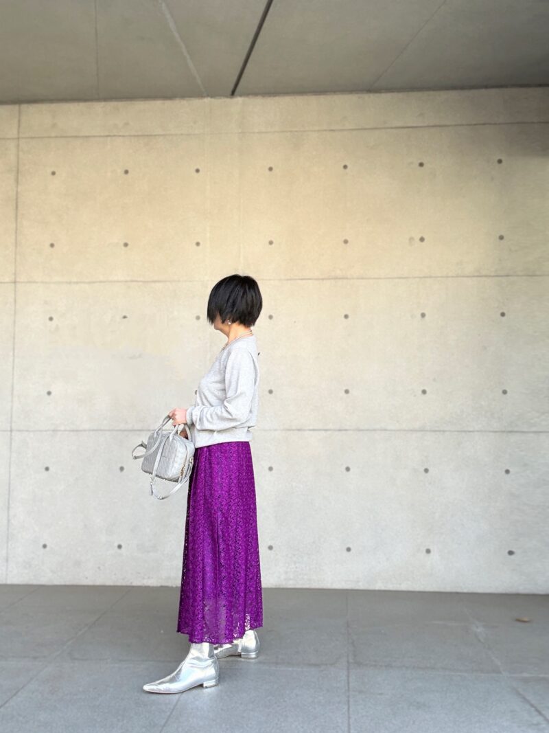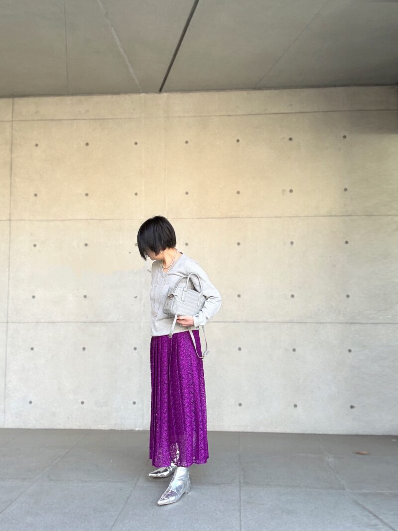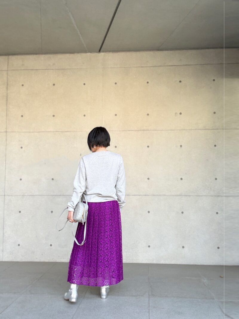 紫色のレースプリーツスカート 攻略コーデ その2