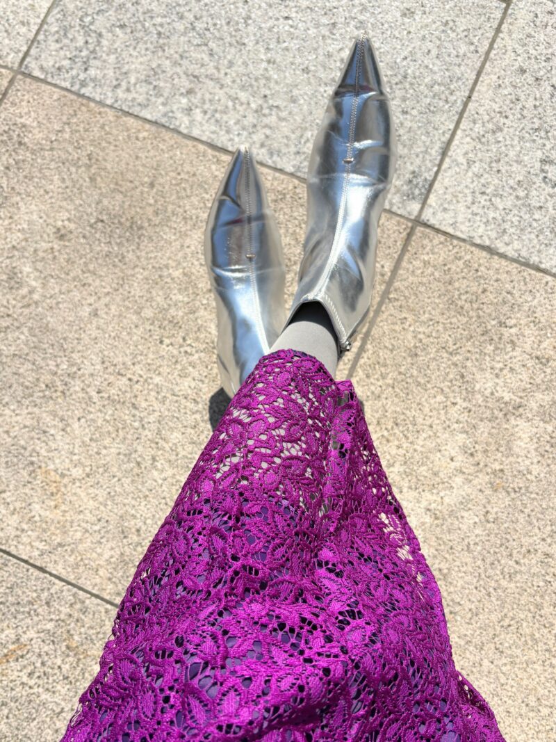 こうしてみると、シルバーのブーツって「光っているグレー」なのだということがよくわかる。どーってことない。どんなコーデにも合うのでホントシルバーの靴は使える。