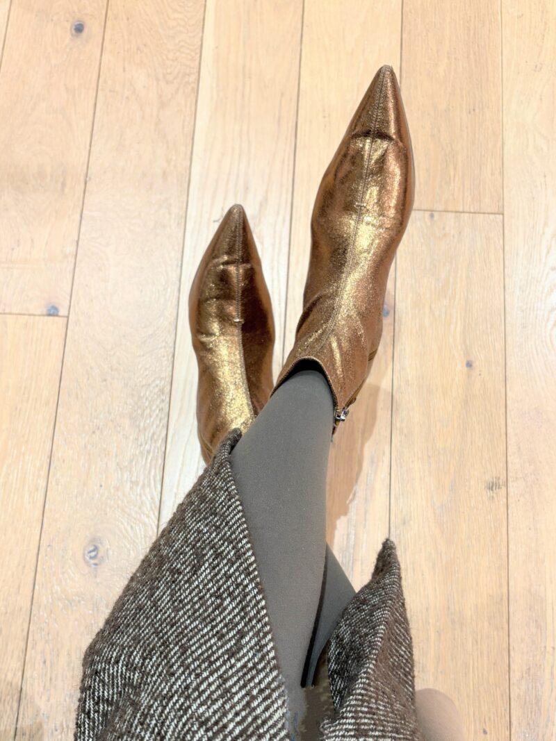 足元。旅行だけどなんとなくスニーカーはカジュアルすぎて嫌だし、パンプスもいや。そんな気分の時に重宝しているGOLDのブーツ。タイツもスカートに合わせてカーキ色で。