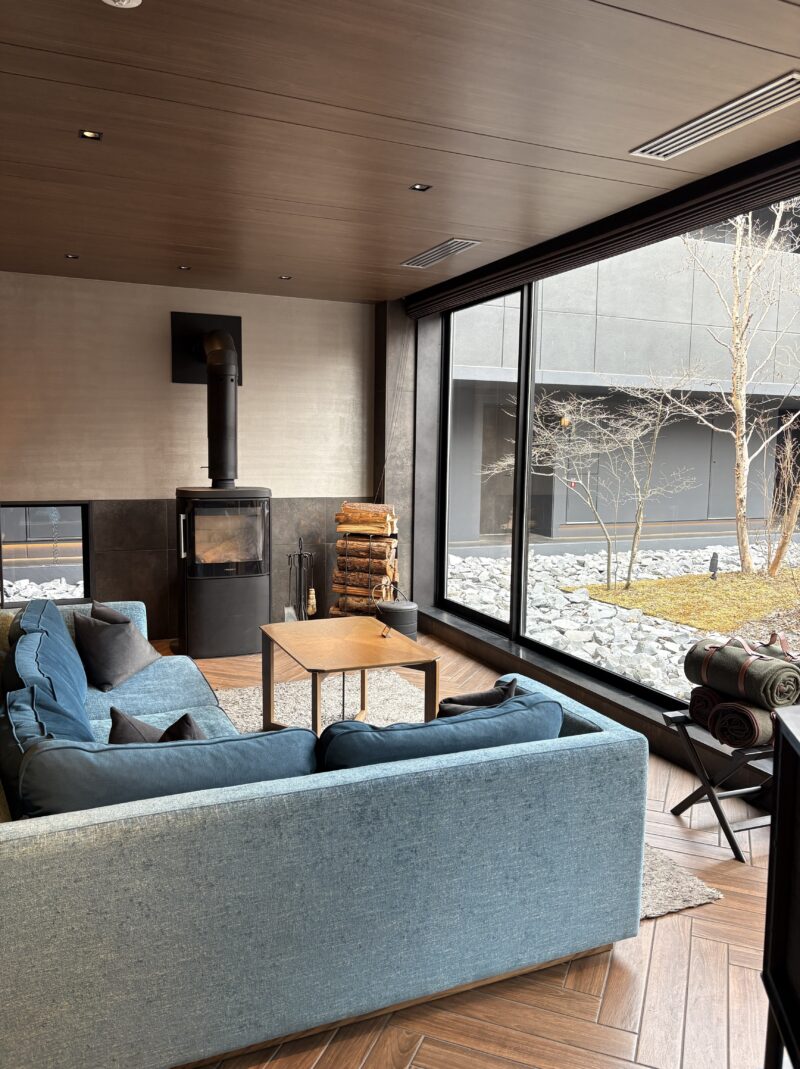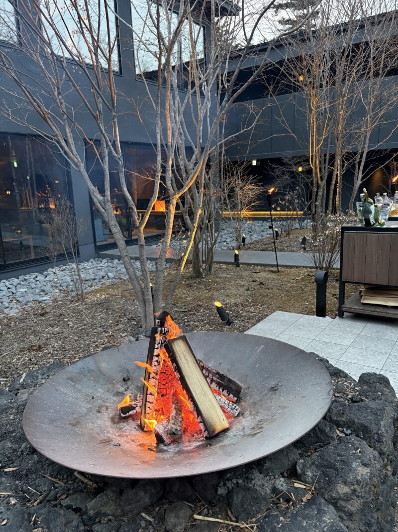 お部屋の中にもバイオエタノールの暖炉があって点火してくださる。