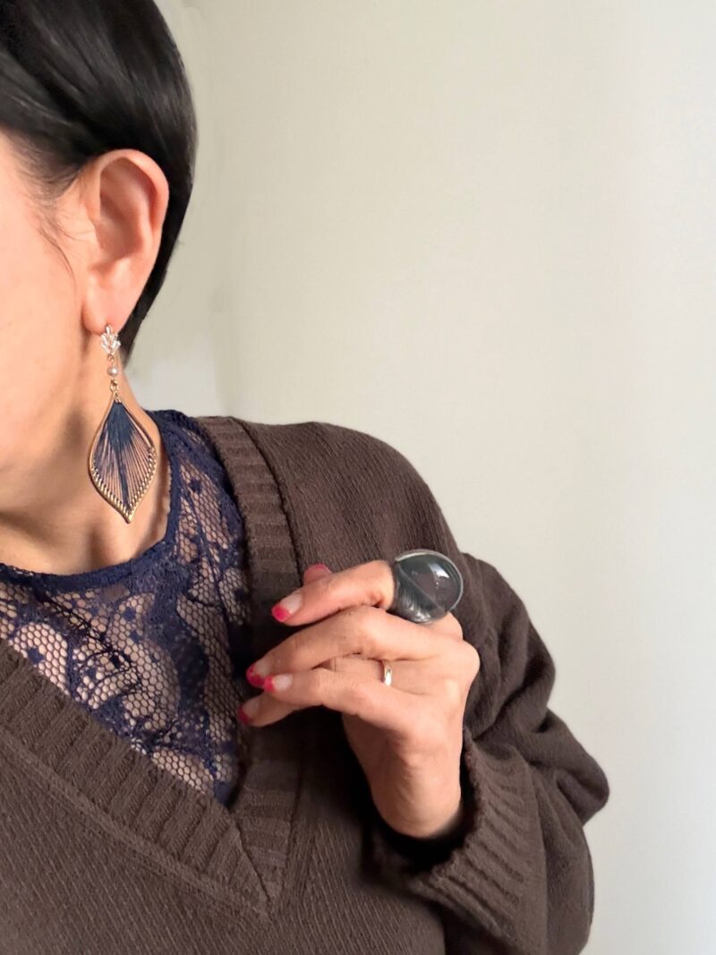 「スノードーム??」って言われる巨大な指輪。こういう一撃で映える指輪が好み。