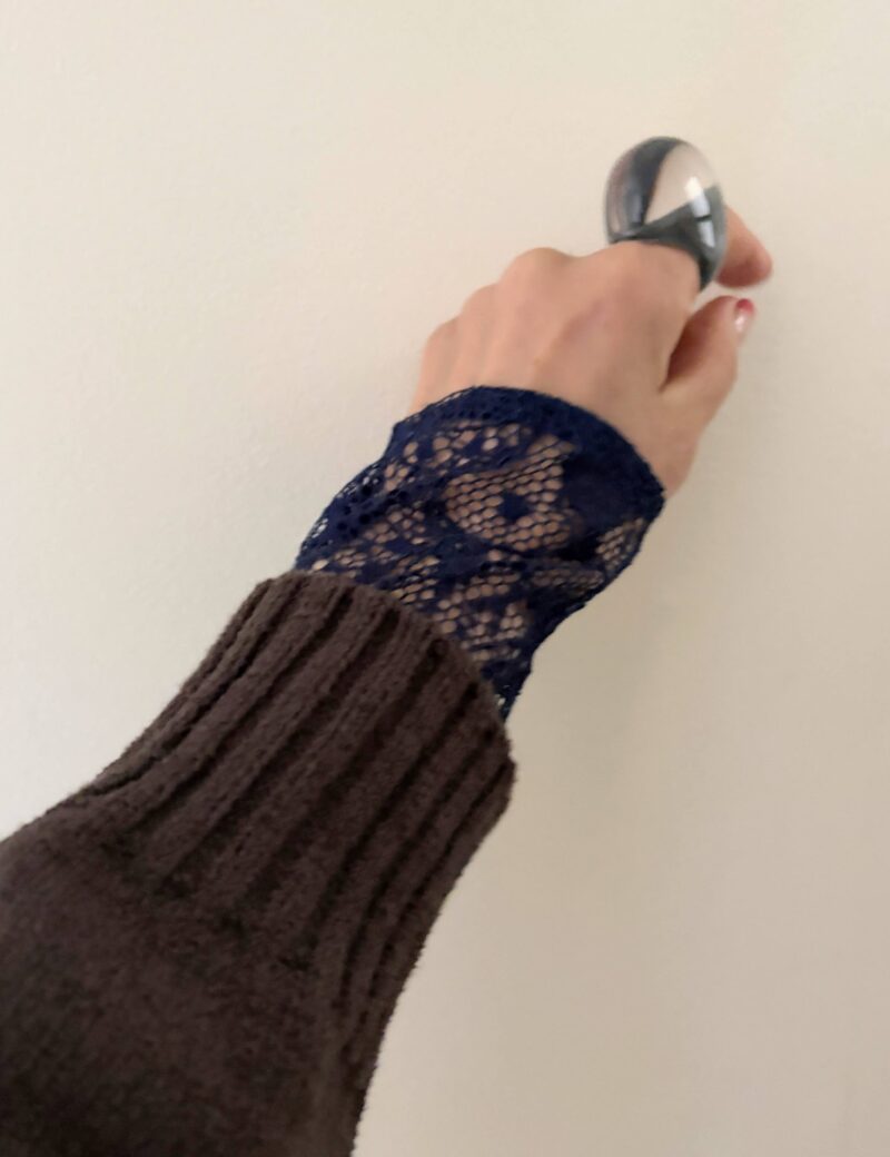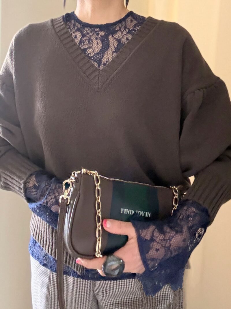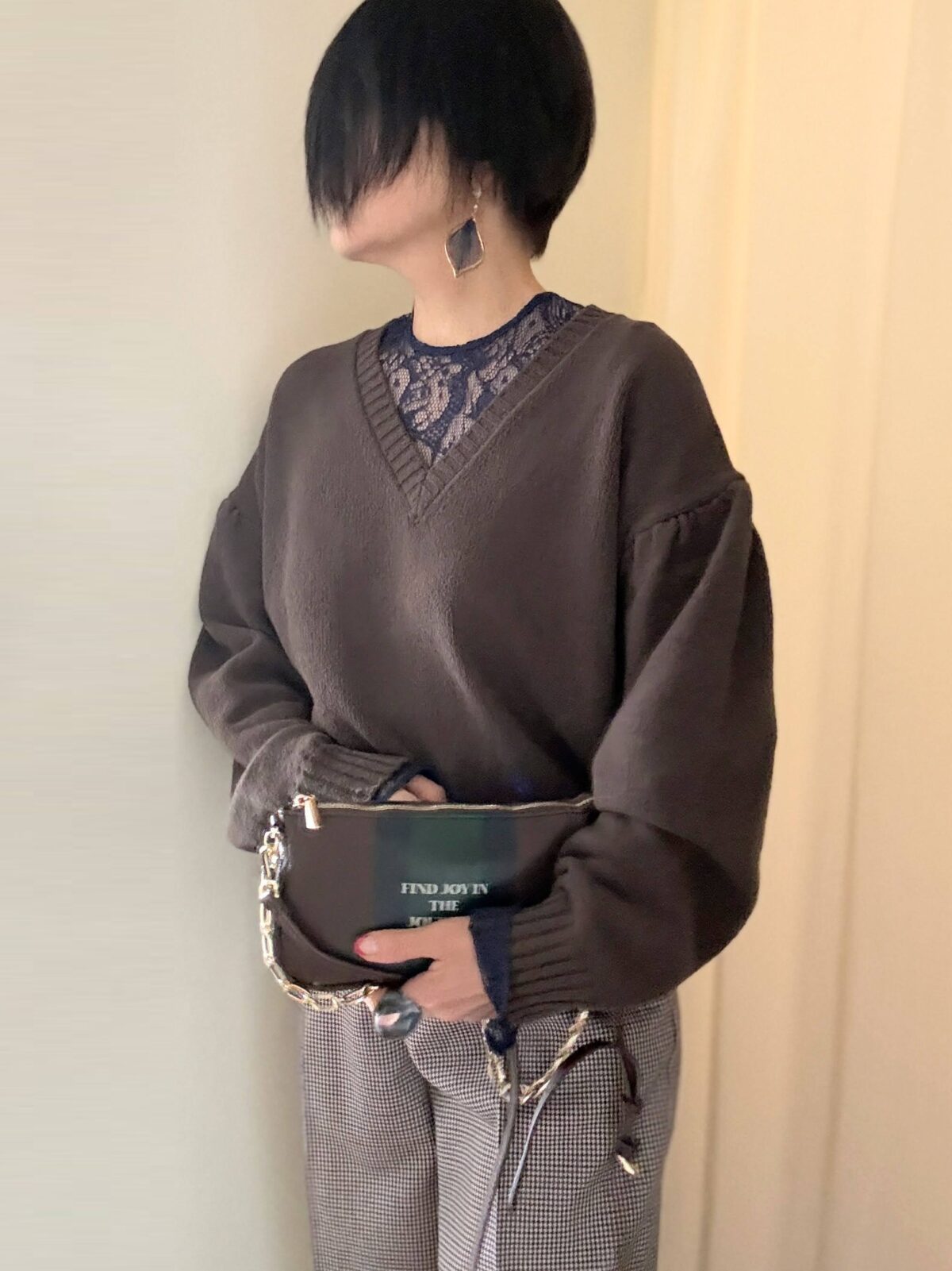 このVネックニットに紺のレースインナーをレイヤードしてみた。