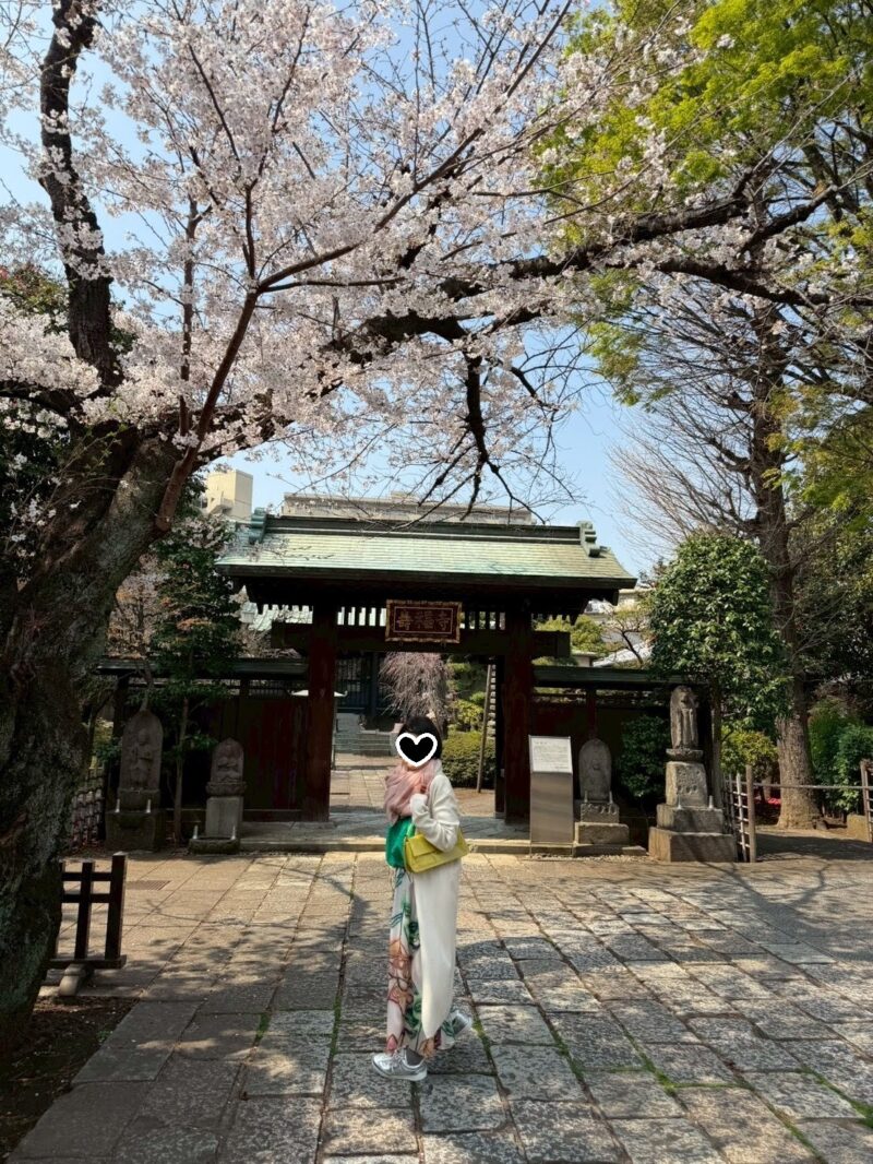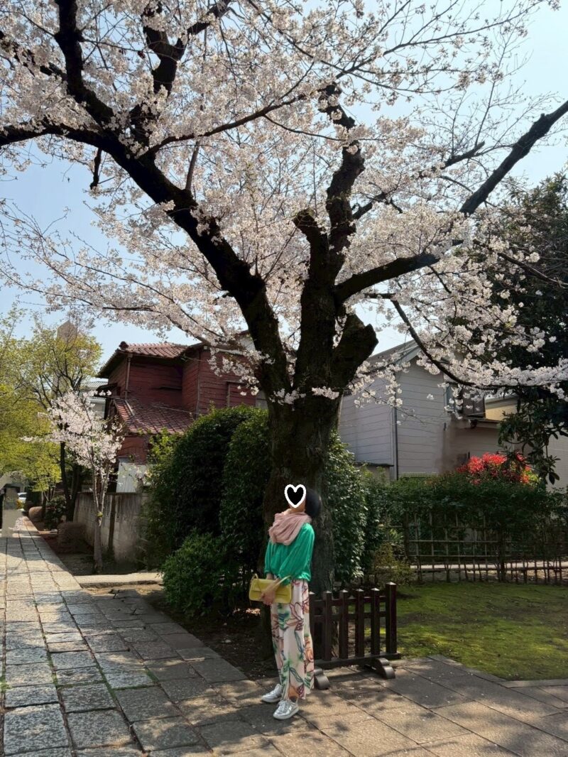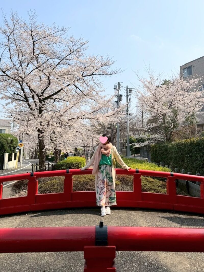 都内はやっと桜が満開。明るい色の服を着てお花見に。