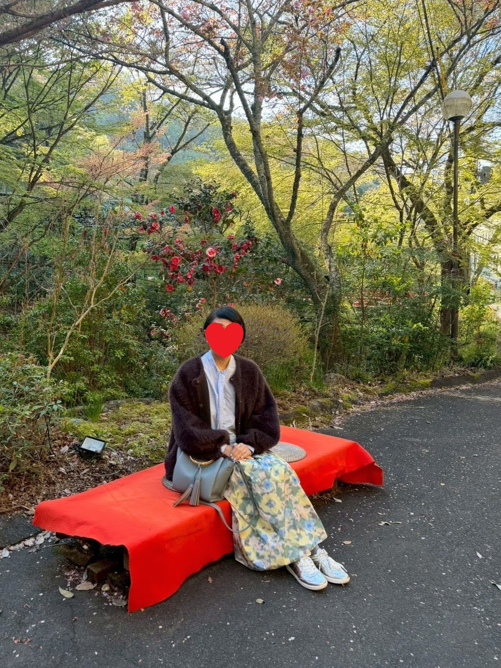 山の中で気温低め。暖かいニットジャケットを持って行って良かった。