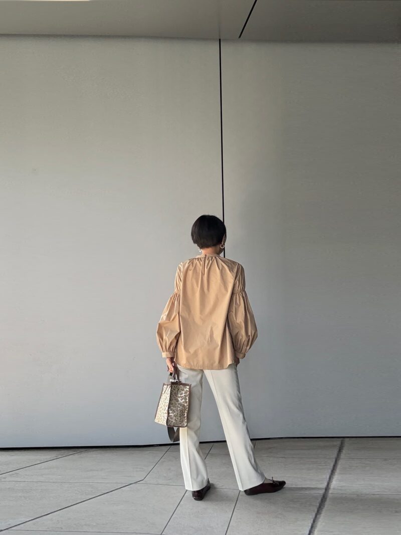このポワン袖のブラウスは気に入って去年から大切に保管しながら着ているもの。