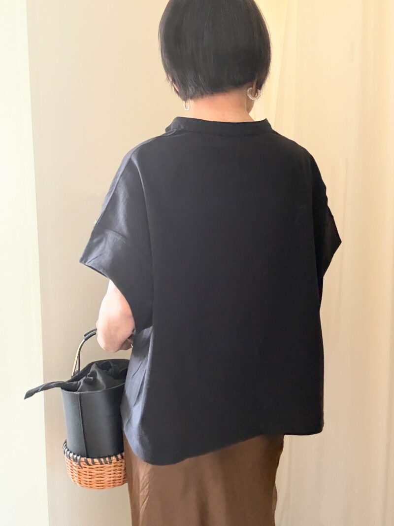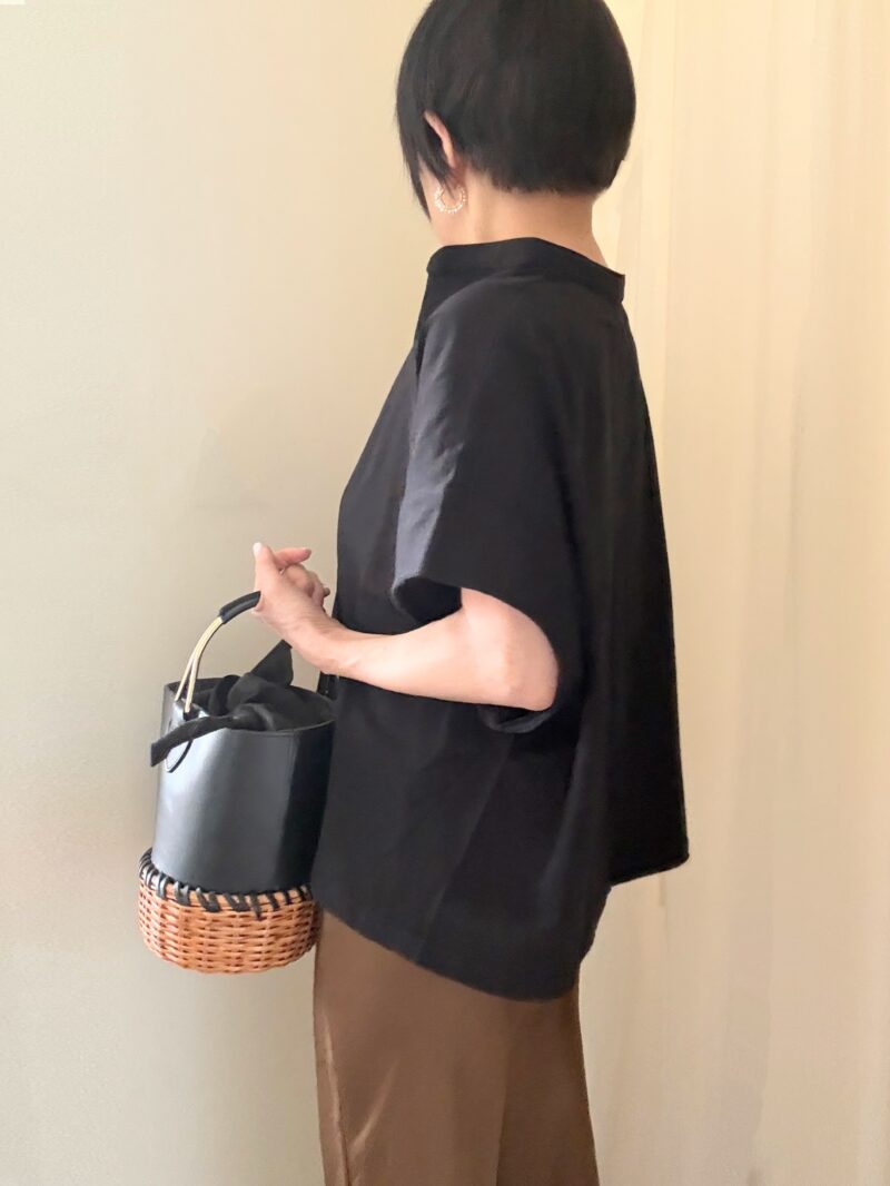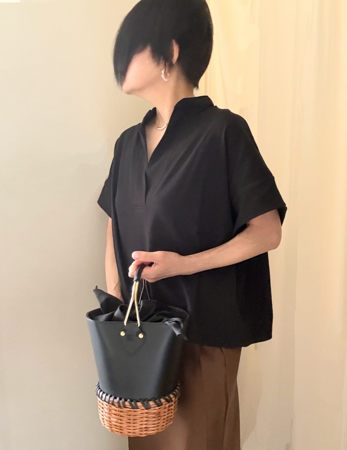 今日の黒TOPS、生地はやや厚地でしっかり。でも立体的に整うデザインなので一枚でOKだった。