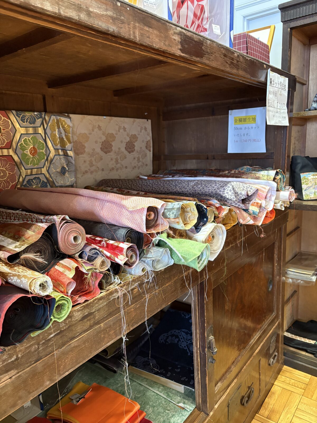 一階にshopもあったのだが、これがまた良かった。半幅帯とか、袋帯織った残りの端切れとかが売っていて。テーブルランナーにしたい。