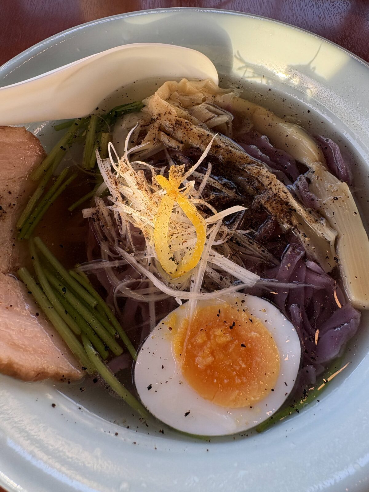 夕方、藤色の佐野ラーメンも。麺が藤色。見た目だけでなく味も良かった!