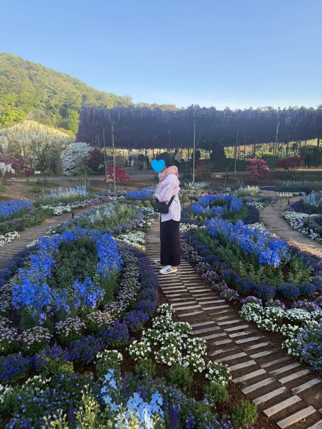 地面にも細かいお花が丁寧に植えられ、青いエリア、ピンクのエリアなど楽しめる。隅々まで園芸のプロの方々の手入れがされている。