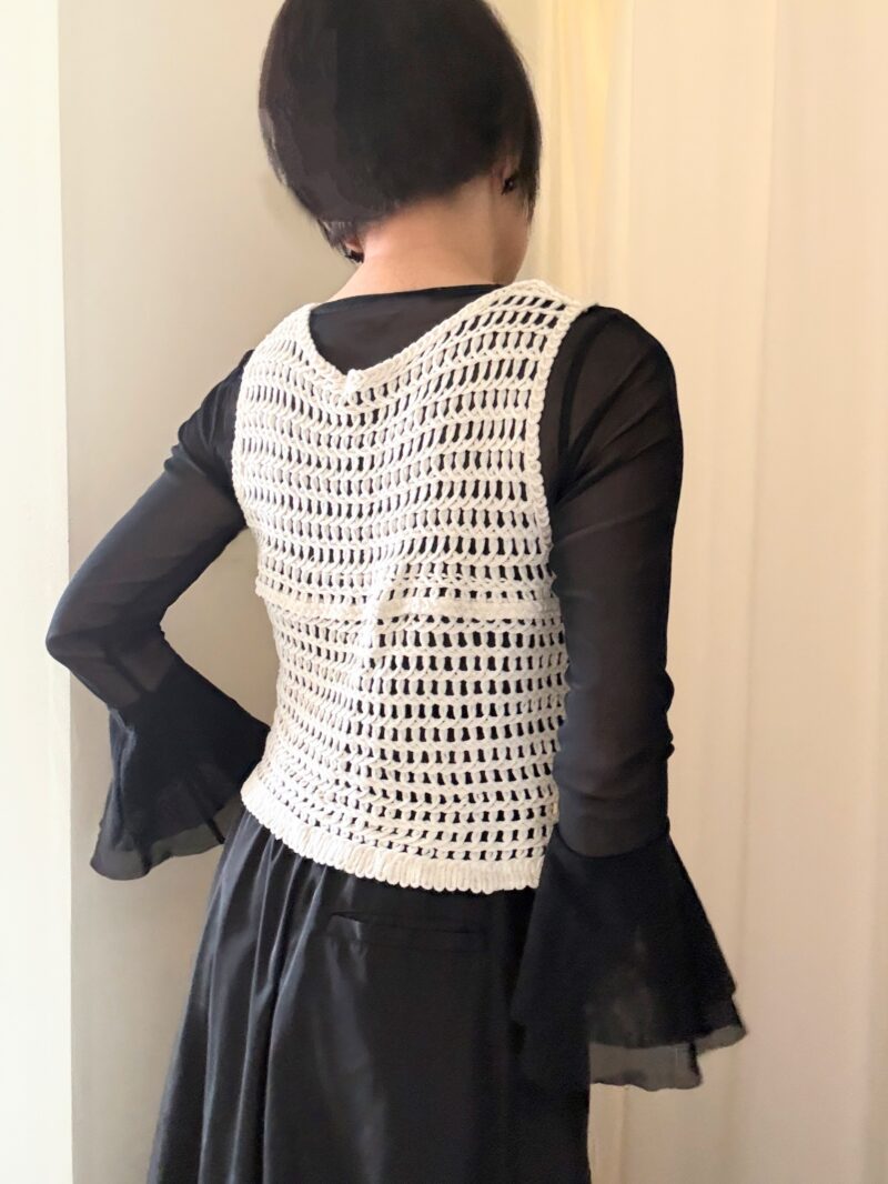 今日は新しいアイテムにチャレンジ~。手編み風のいわゆる「クロシェ編みのベスト」。