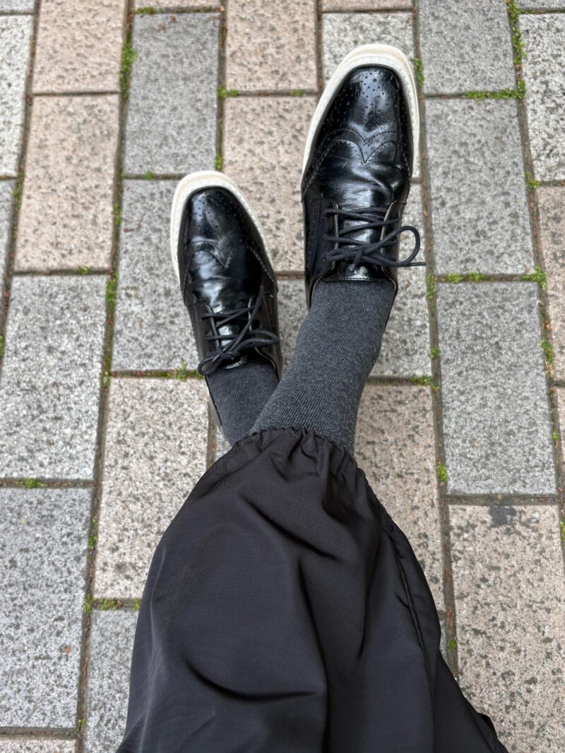 今日の黒のスカートはバルーンスカート。裾のドロストをキュッと絞れる。