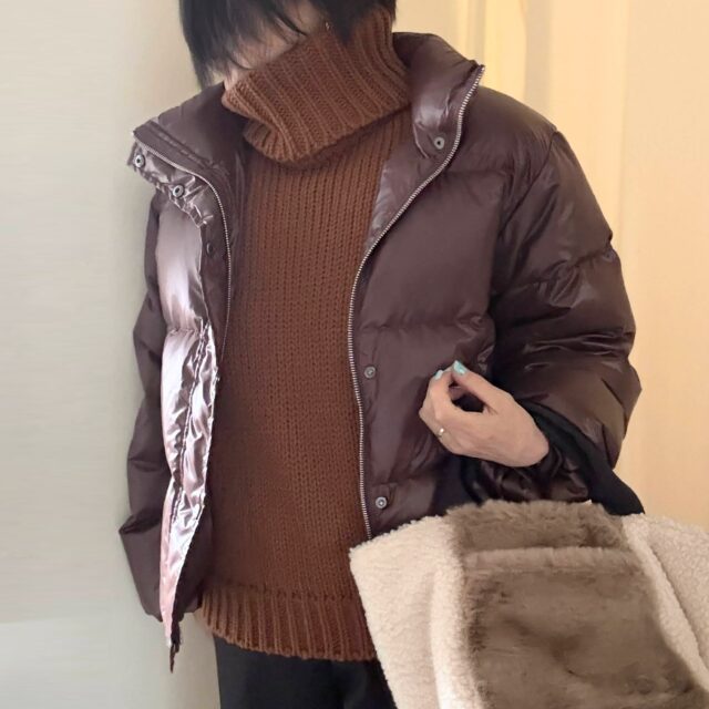 休日。小雨の降り続く寒い日だったけど、外出。 丈が短く色が気に入ってで買ったダウンで。 ダウンって中に分厚いかさばるニットが着にくい。そこで工夫。袖なしのニットベストを。 去年ZARAで買ったビッグタートルネックのニットベスト。手が動かしや...