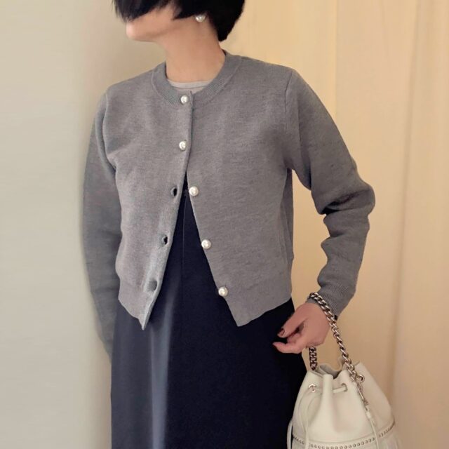 かなりこげ茶に近いバーガンディ色の革のブルゾン。このハードぉ~なアイテムにさらにセンタープレスのパンツ+ひもオジ靴。という辛口ハードなコーデ。 この場合、どこかに「甘さ」を入れないと本当にオジになってしまう・・・・。ショートカットで骨っぽい...